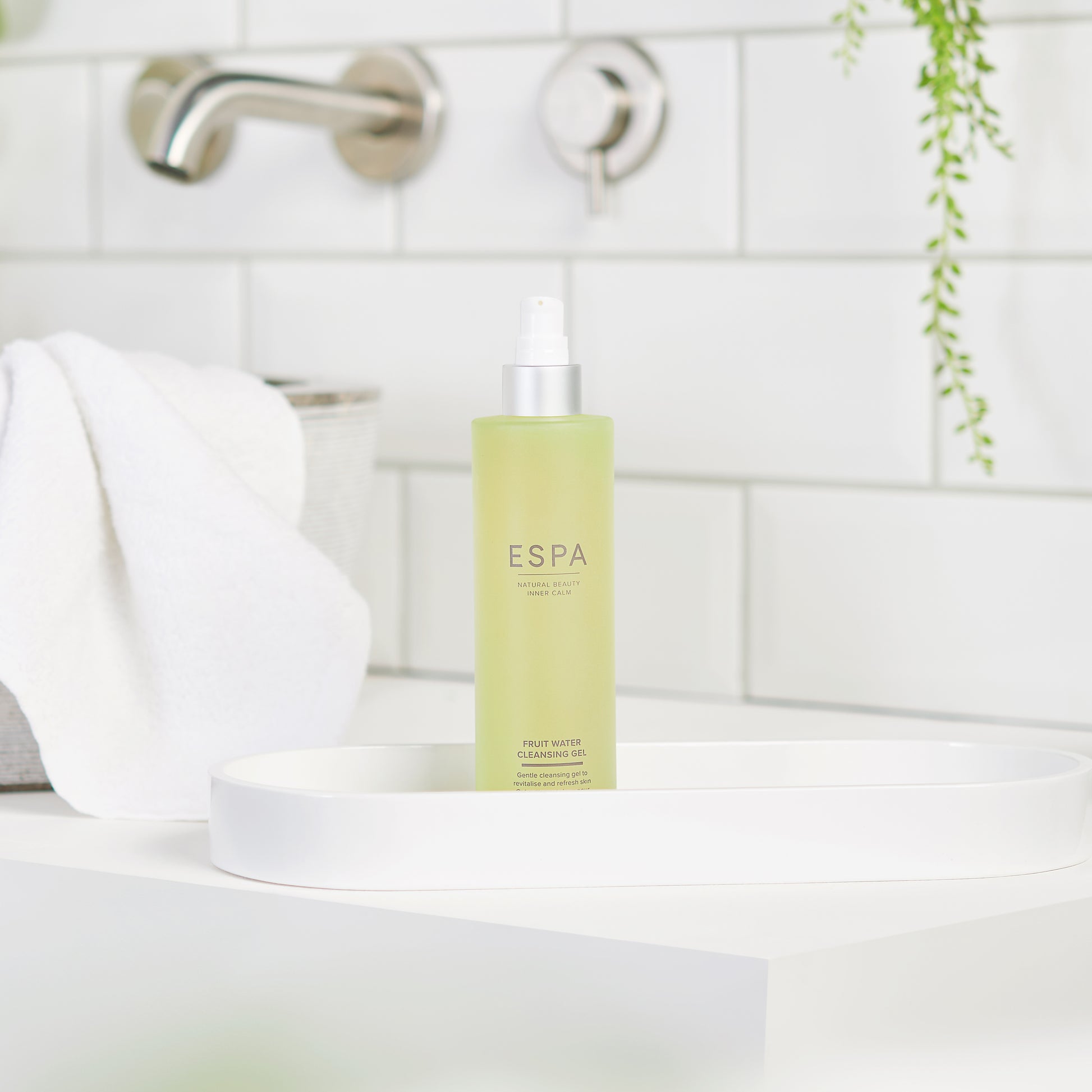 A foaming, pH-balanced Fruit Water Cleansing Gel by ESPA that helps to melt away makeup and impurities, leaving the skin feeling fresh, clean and soft.