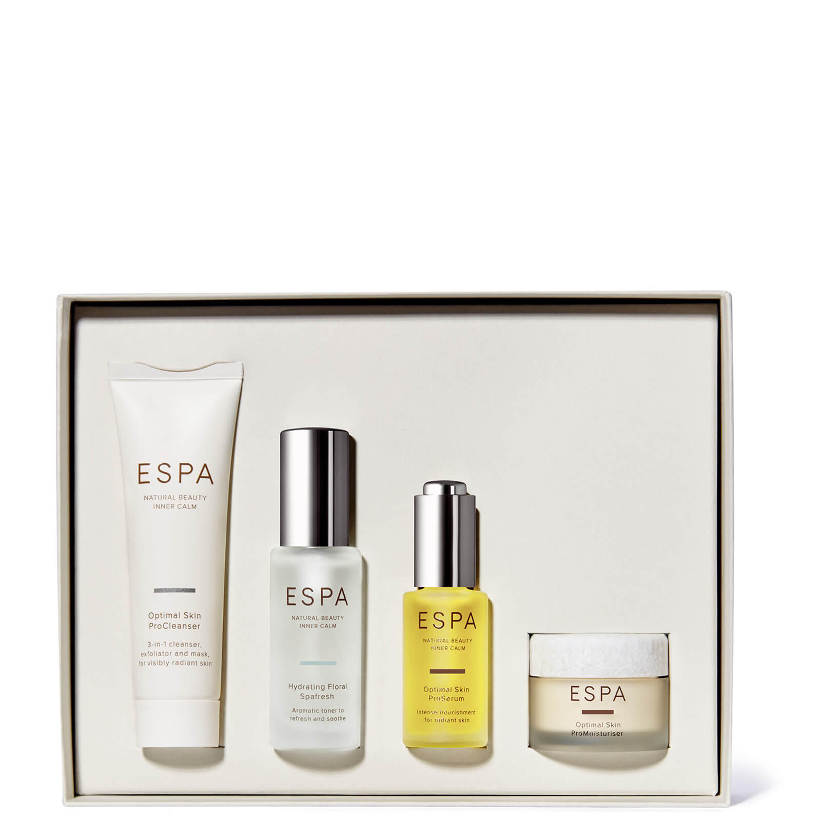 Reveal clear, hydrated and glowing skin every day with these four luxe-sized skincare essentials. Packed with powerful plant, marine and aromatherapy blends, this responsive and multifunctional collection works in harmony with skin on multiple levels to quickly refine, balance and nourish the complexion, while also supporting natural processes for the ongoing visible health of skin. Innovatively formulated to work for every skin type and age, they make the perfect gift for a friend – introducing them to ESPA and our award-winning Pro Collection… plus they’re the ideal size for travelling (should you wish to keep one for your weekend bag too). Our Optimal Skin Introductory Collection gift comes beautifully presented in a signature ESPA box.