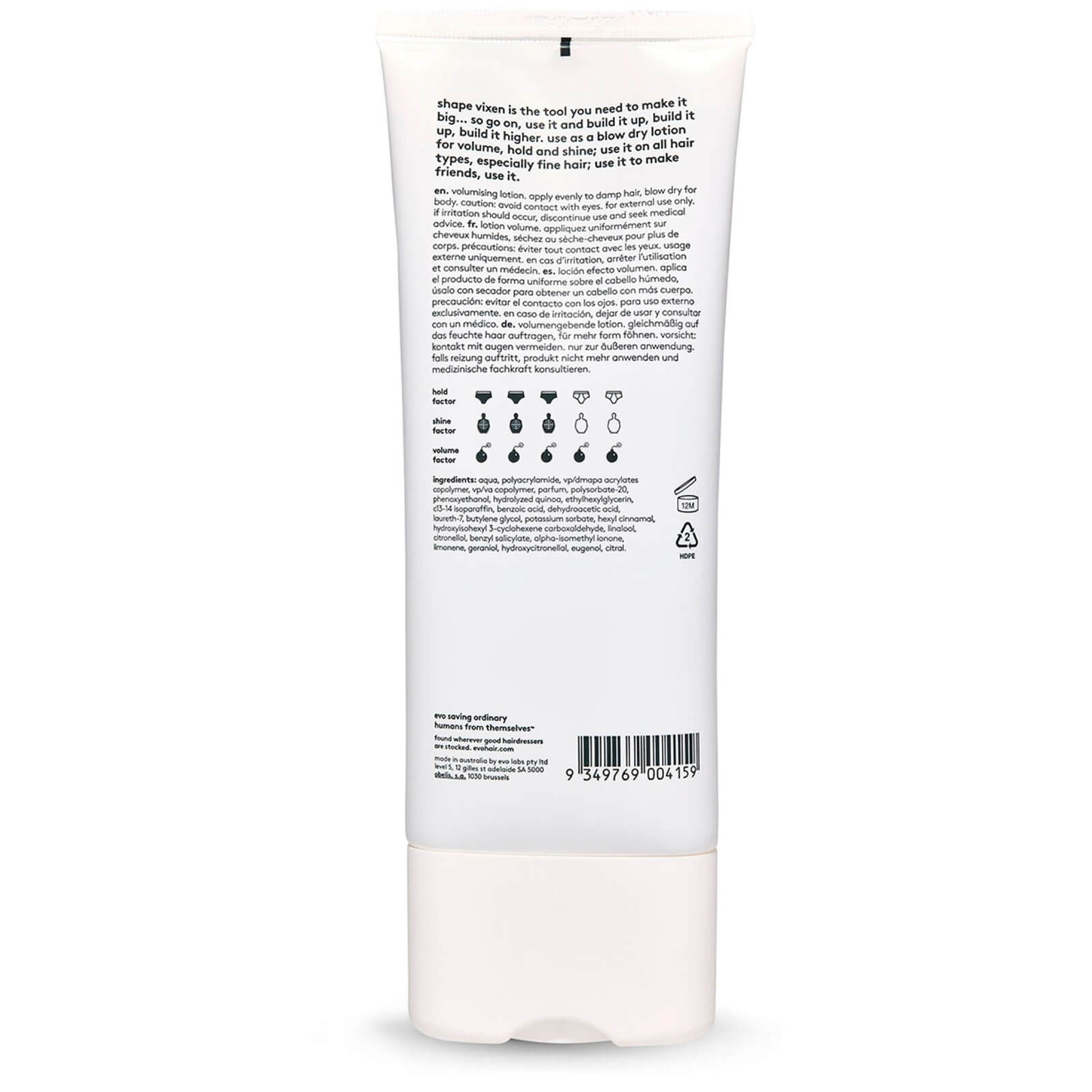 Evo shape vixen volumising lotion is a multi-purpose product for adding volume and style support, defining and holding curl or adding separation and texture. Recommended for all hair types, especially fine hair.