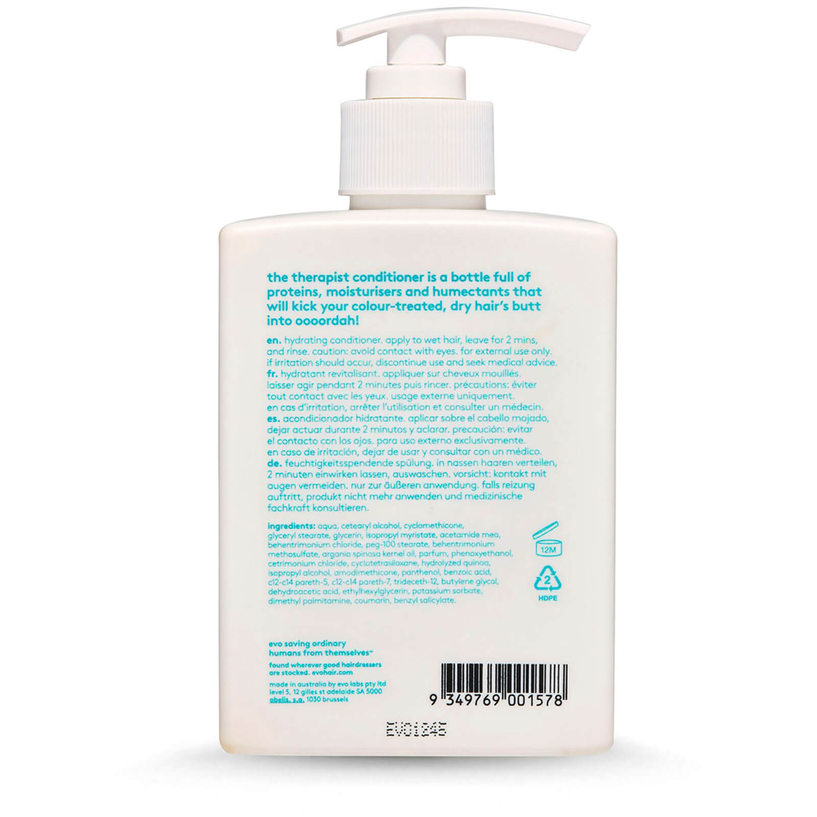 Evo the therapist calming conditioner helps to strengthen hair, prevent fading of colour and reduce frizz. Adds moisture, conditions, enhances shine, helps protect from solar damage, improves combability. Recommended for dry, frizzy, colour-treated hair.