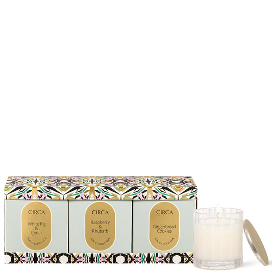 CIRCA Christmas 3x60g Candle Trio - White Fig & Cedar, Raspberry & Rhubarb, Gingerbread Cookies